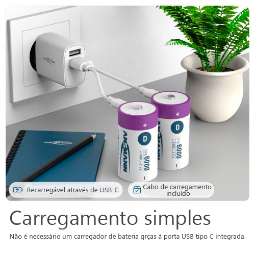 As baterias recarregáveis de íon-lítio tipo D 6000 mAh (mínimo 5400 mAh) oferecem excelente desempenho e longa duração para dispositivos de alto consumo. São ideais para lanternas potentes, equipamentos profissionais, rádios, brinquedos grandes e dispositivos industriais.