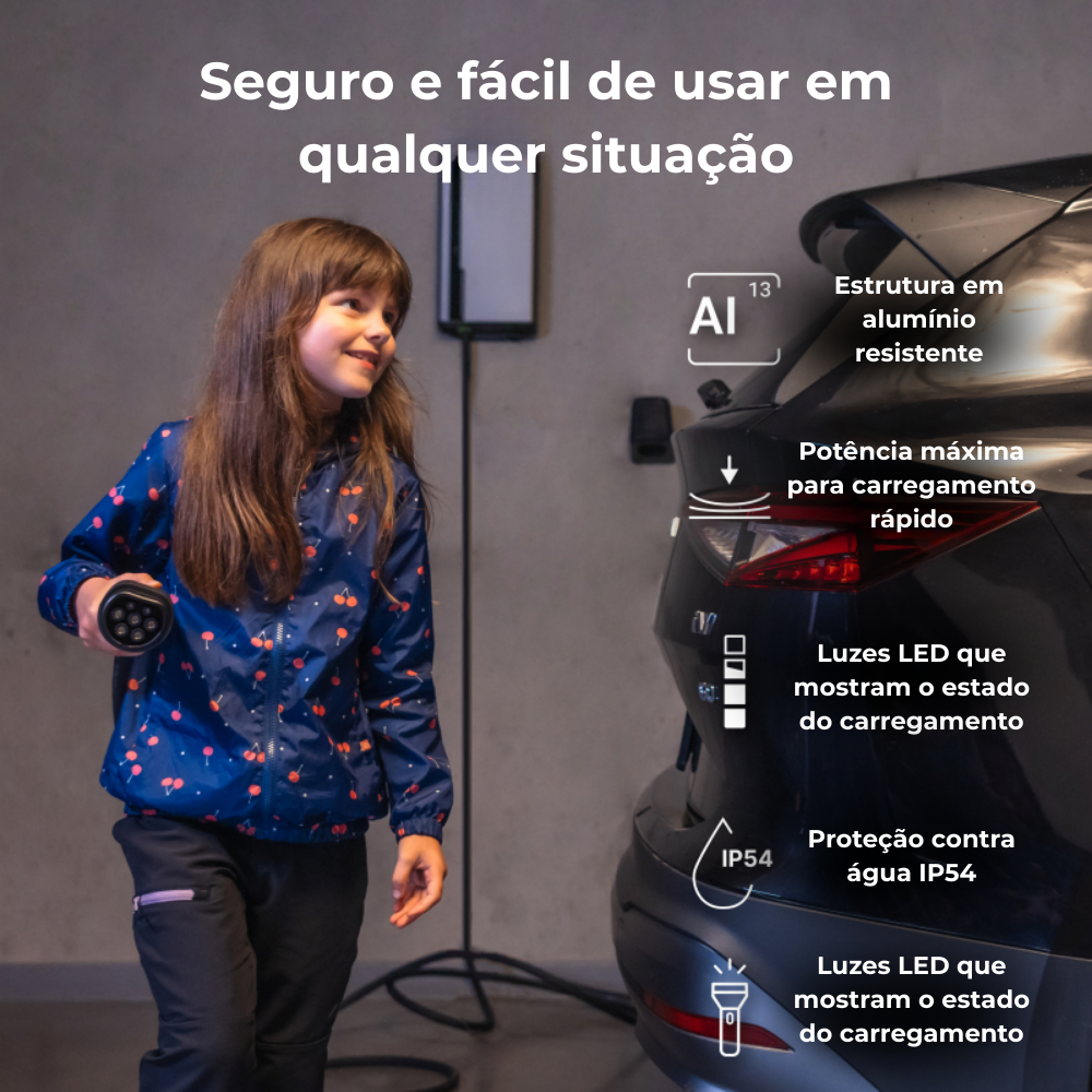 Com construção robusta, proteções elétricas avançadas e certificações internacionais, este wallbox oferece máxima segurança para o utilizador, para o veículo e para a instalação elétrica. É a escolha perfeita para quem quer investir numa solução moderna, fiável e preparada para o futuro da mobilidade elétrica.
