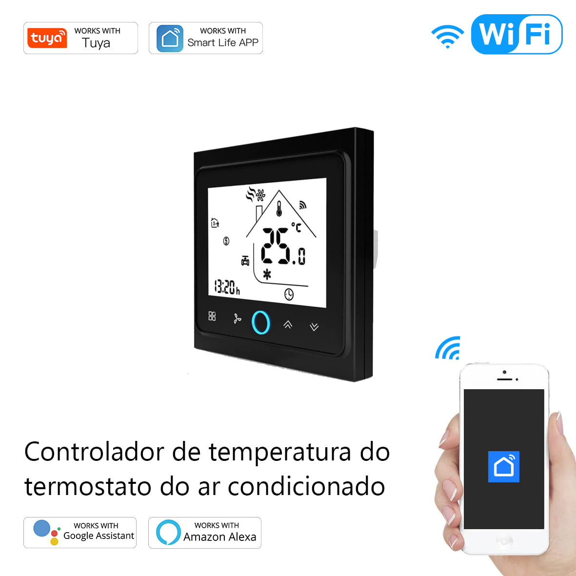 Ideal para residências, escritórios e espaços comerciais, este controlador garante conforto térmico e economia de energia, podendo ser integrado a sistemas de automação inteligente (em versões compatíveis).