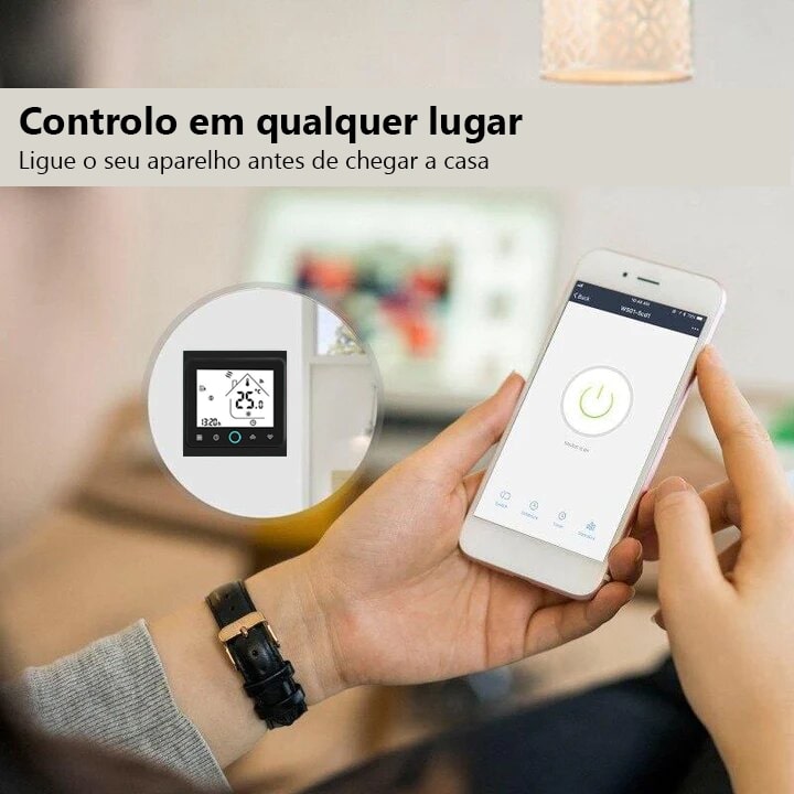 Funções: Agendamento semanal, ajuste de temperatura, bloqueio infantil, proteção contra congelamento