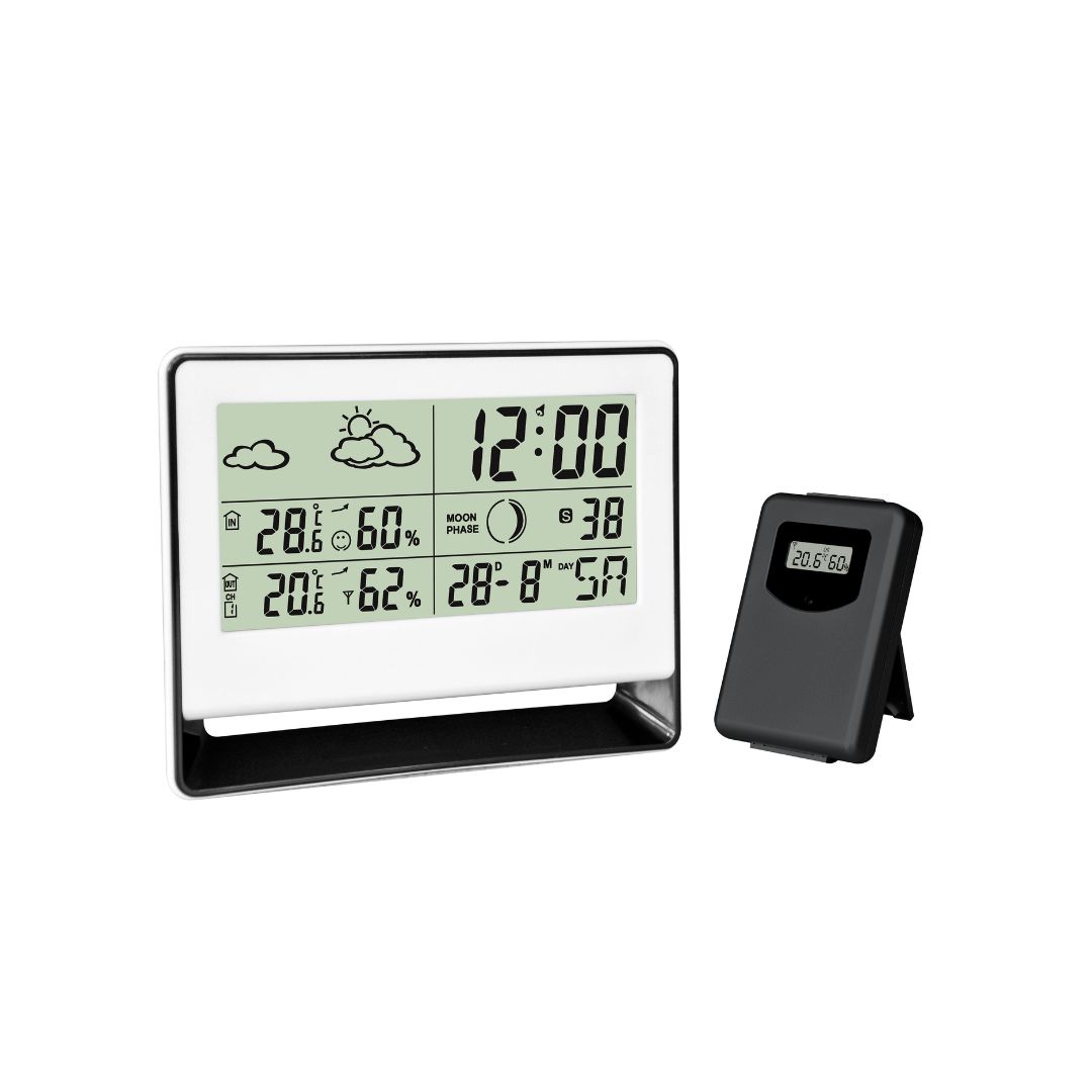 Veja previsões do tempo e temperaturas internas e externas, graças a esta estação meteorológica com um design sóbrio e elegante.