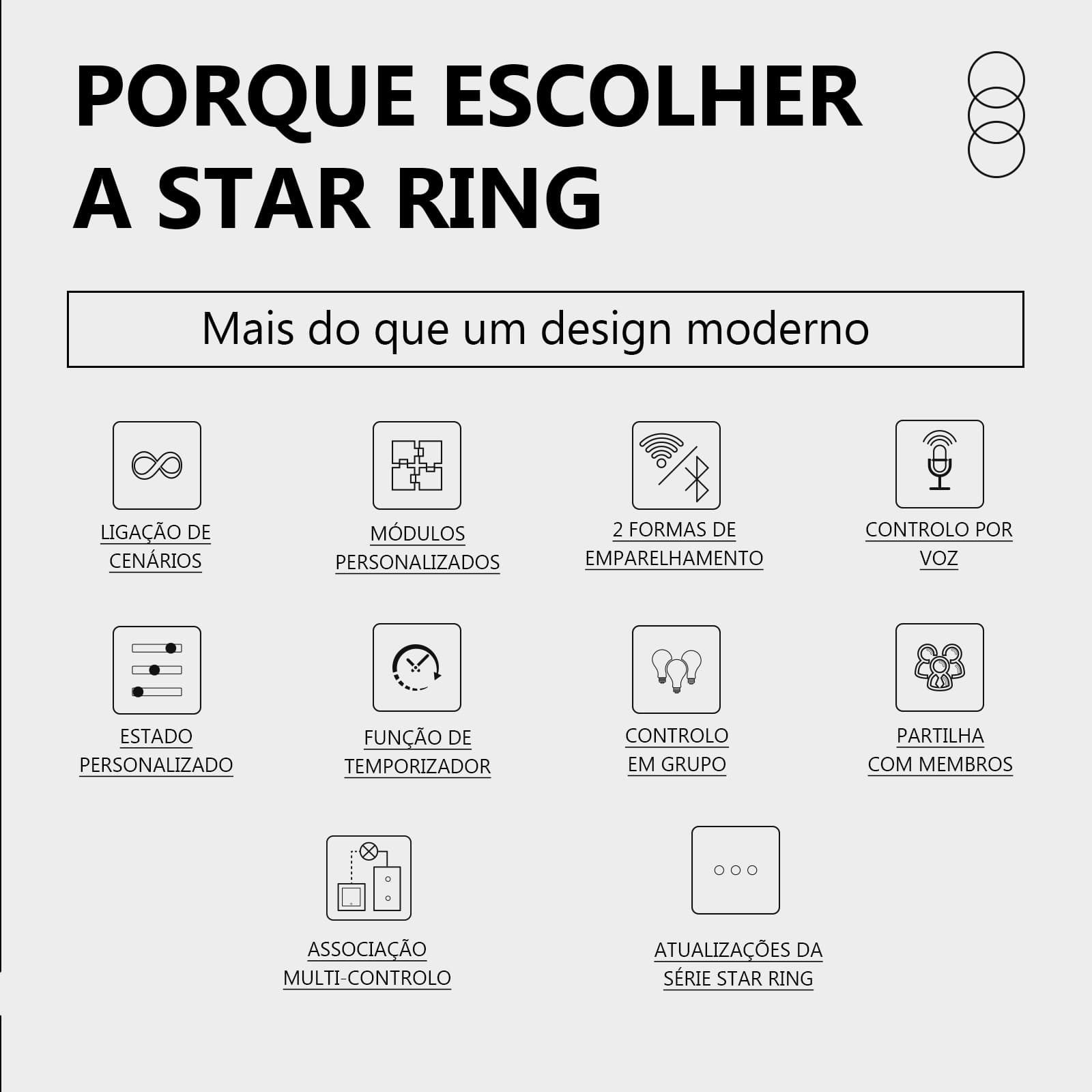 Interruptor sem fios Star Ring para controlo de iluminação.