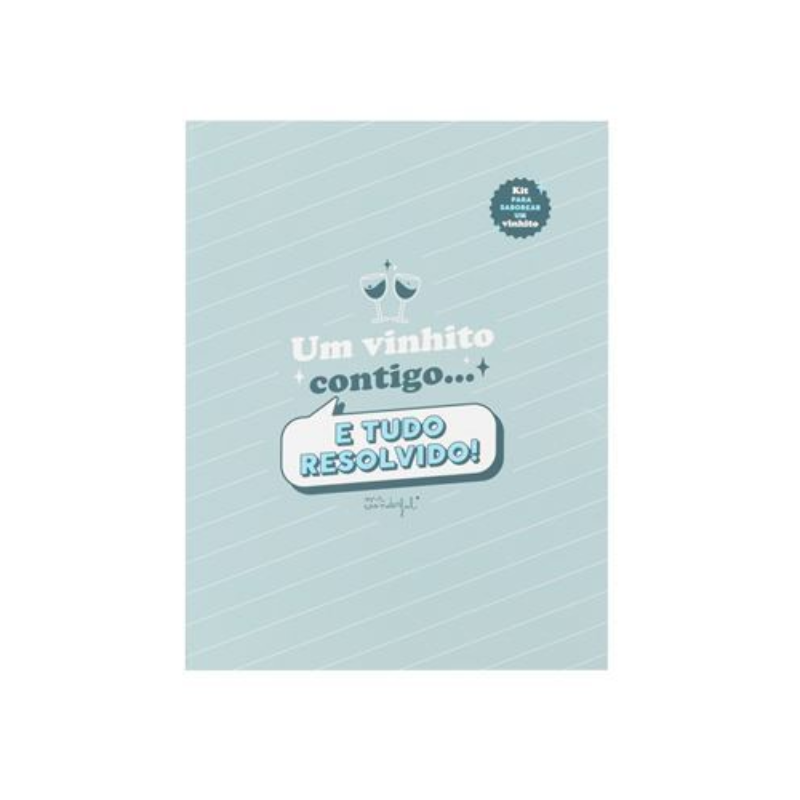 O Kit de Vinho Mr. Wonderful – “Um Vinhito Contigo… E Tudo Resolvido!” traz charme, humor e funcionalidade num só conjunto. Composto por acessórios essenciais para saborear um bom vinho, este kit vem embalado numa elegante caixa em forma de garrafa com uma mensagem divertida e original – perfeita para oferecer a alguém especial… ou para ti mesmo!