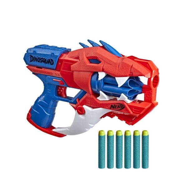 Explore aventuras emocionantes com os lendários dinossauros da equipa DinoSquad e utilize o lançador de dardos Nerf DinoSquad Raptor-Slash!