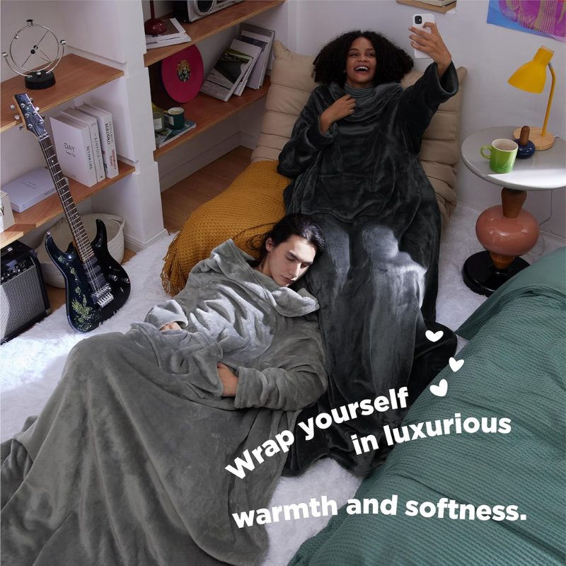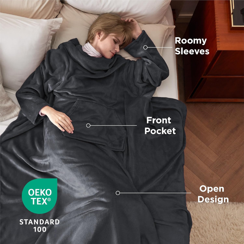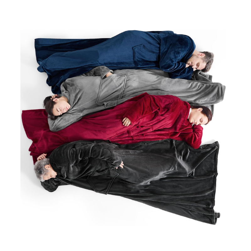 Esta Manta/ Camisola Polar combina funcionalidade e conforto num só produto. Perfeita para relaxar, oferece calor e liberdade de movimentos graças às mangas e ao bolso frontal.
