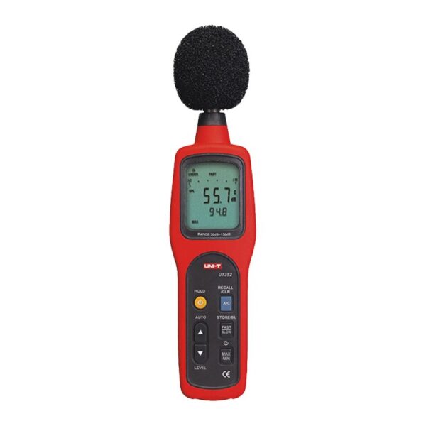 Eficiente energeticamente, o UT352 opera por até 20 horas ininterruptas, sendo ideal para medições em ambientes industriais e avaliações ambientais de níveis sonoros.