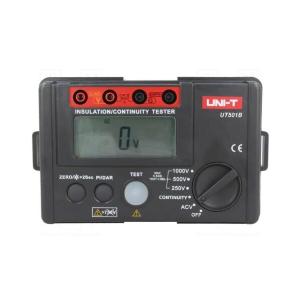 O Medidor de Resistência de Isolamento UT501B oferece recursos avançados, que inclui advertência de tensão alta, indicador de sobrecarga, indicador de baixo nível de bateria e mudança automática dos intervalos.