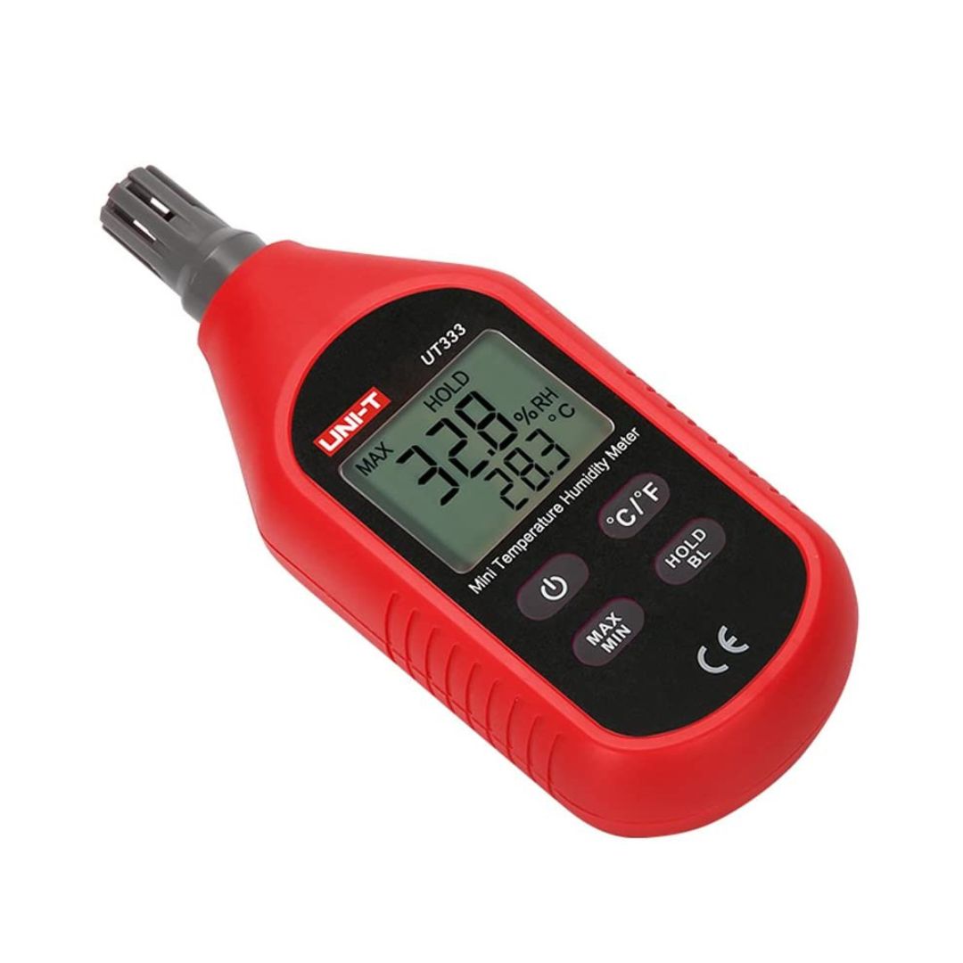 Termómetro digital com higrómetro, dimensões bastante reduzidas e um design ergonómico.