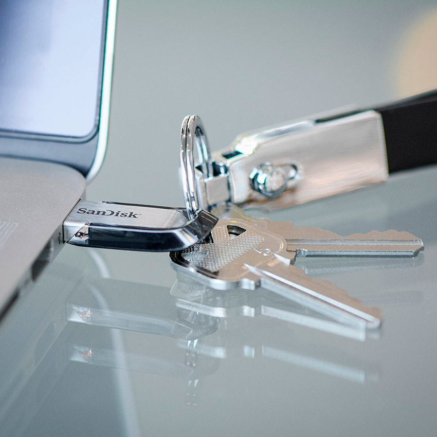 O pendrive SanDisk Ultra Flair™ USB 3.0 proporciona transferência de arquivos rápida, alcançando até 150MB/s com a tecnologia USB 3.0.