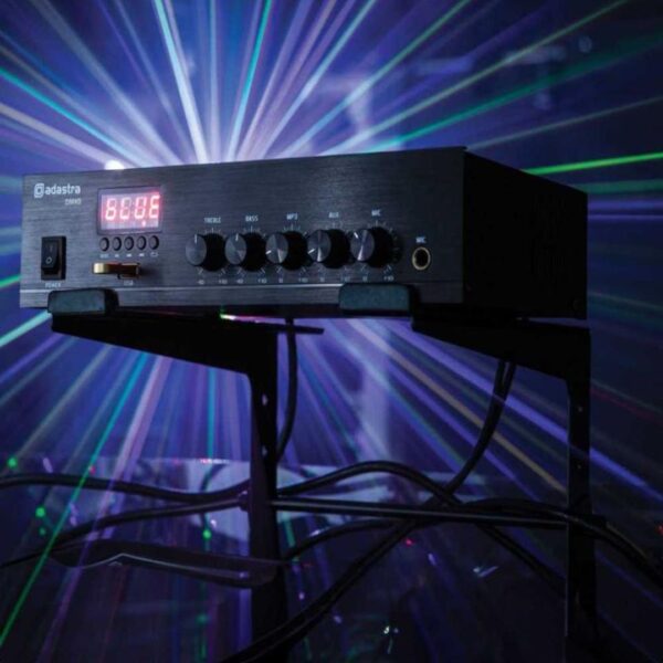 Misturador-amplificador de linha 100V com amplificador digital em um alojamento compacto.