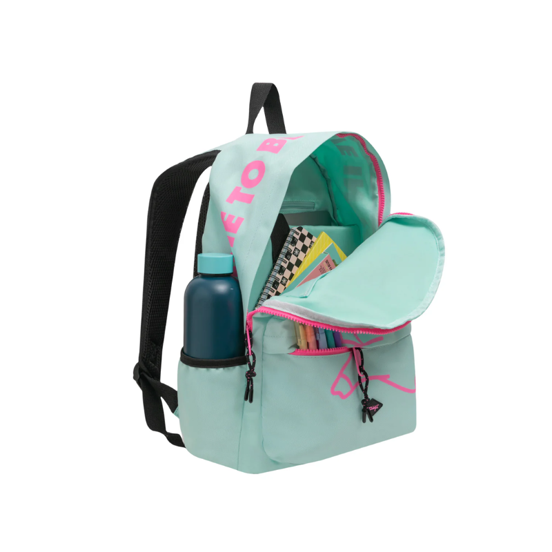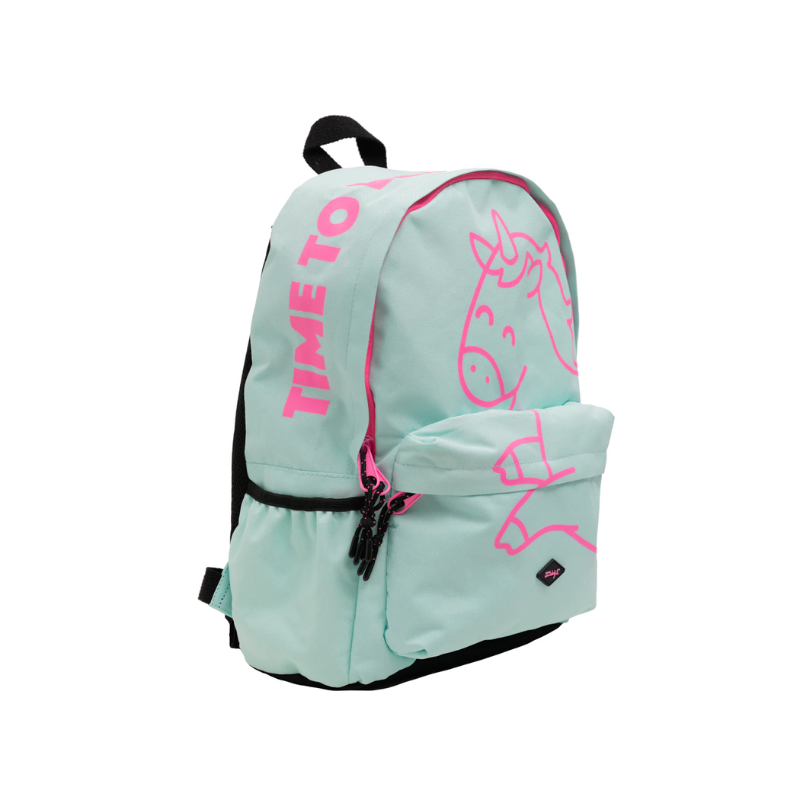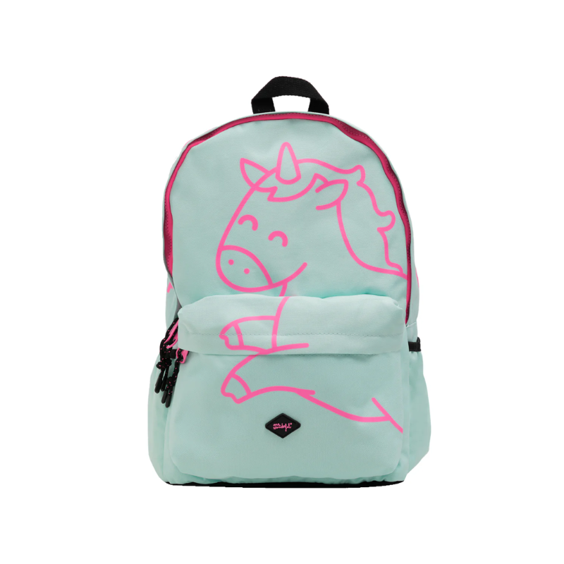 Mochila prática e estilosa em tom menta, da coleção Mr. Wonderful. Tem um unicórnio rosa e a frase inspiradora “Time to Believe in You”. Feita com material sustentável (rPET) a partir de garrafas recicladas, é perfeita para estudantes e para o dia a dia, com alças ajustáveis e costas almofadadas para máximo conforto.