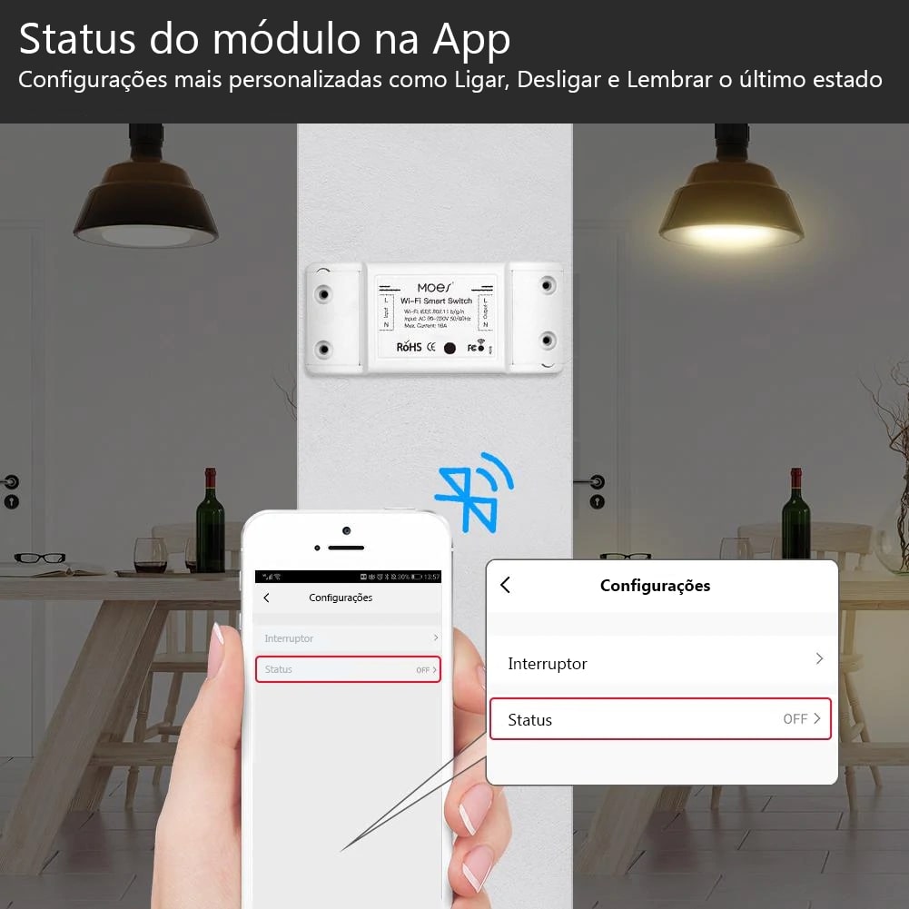 Permite Ligar e Desligar Equipamentos ou Luz à distância através da APP Smart Life. Solução mais rápida e económica para colocar um interruptor ou comando sem fios noutro local, sem necessidade de cortes na parede.