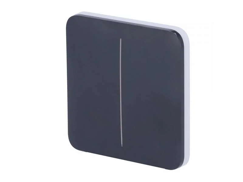 A cor cinza claro integra-se facilmente em ambientes modernos e minimalistas, oferecendo um design discreto e funcional. Permite o controlo de dois circuitos de luz de forma intuitiva e sem fios, ideal para zonas com múltiplas fontes de iluminação.